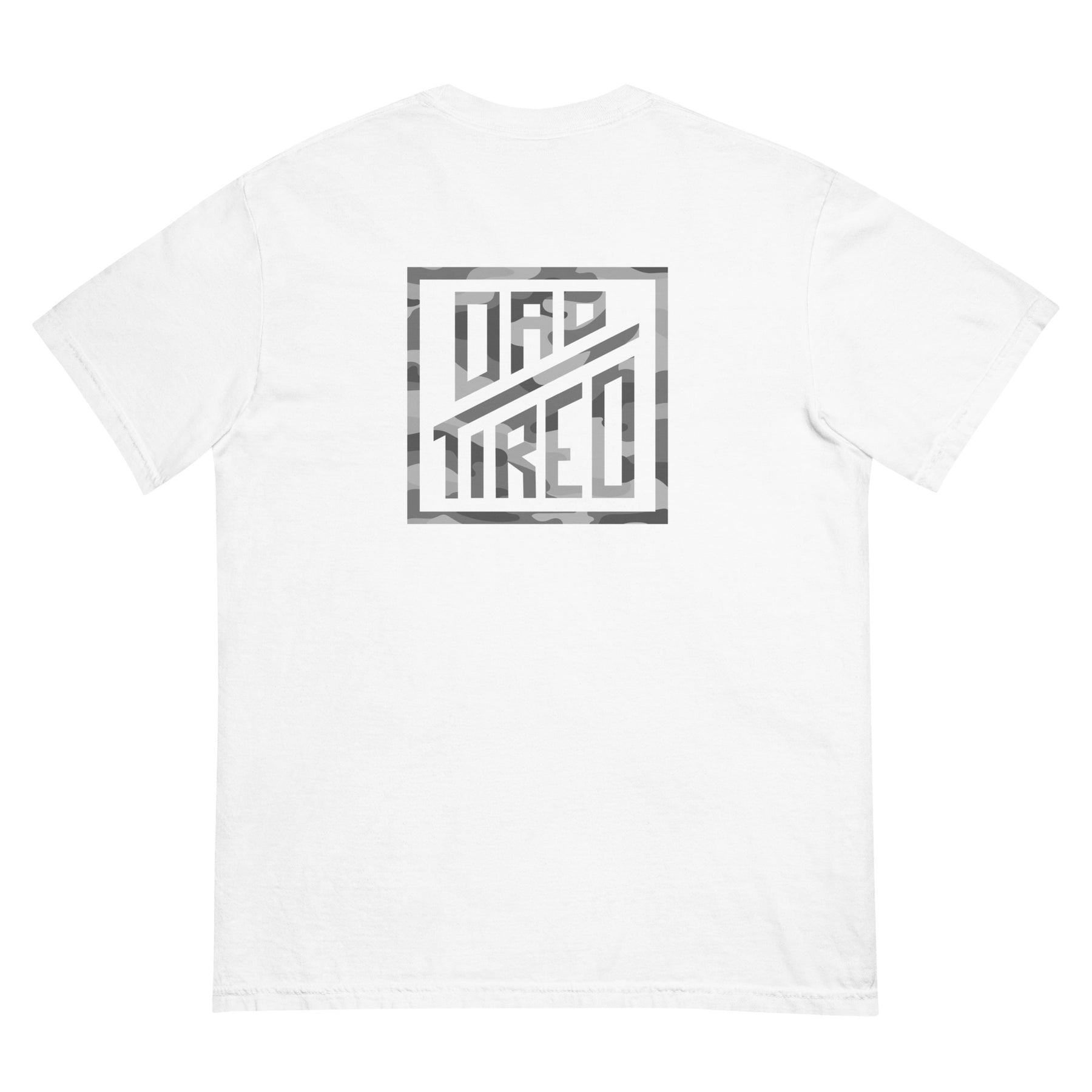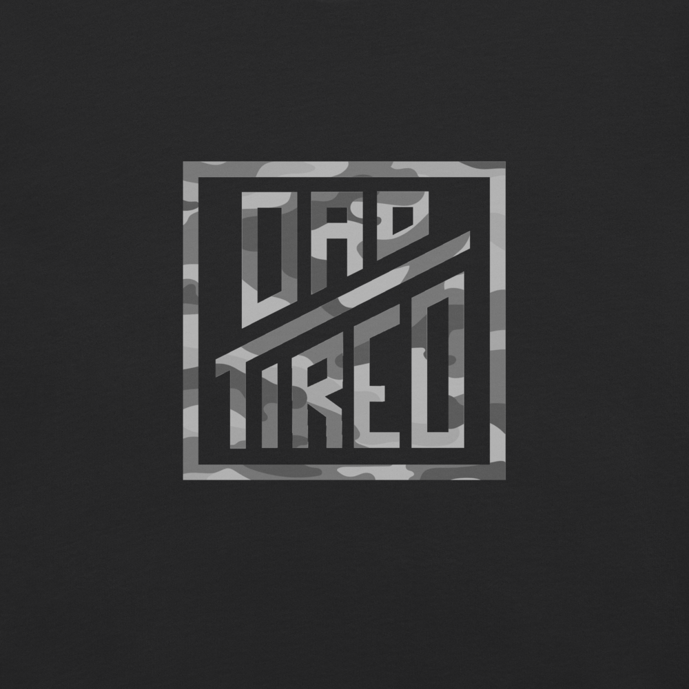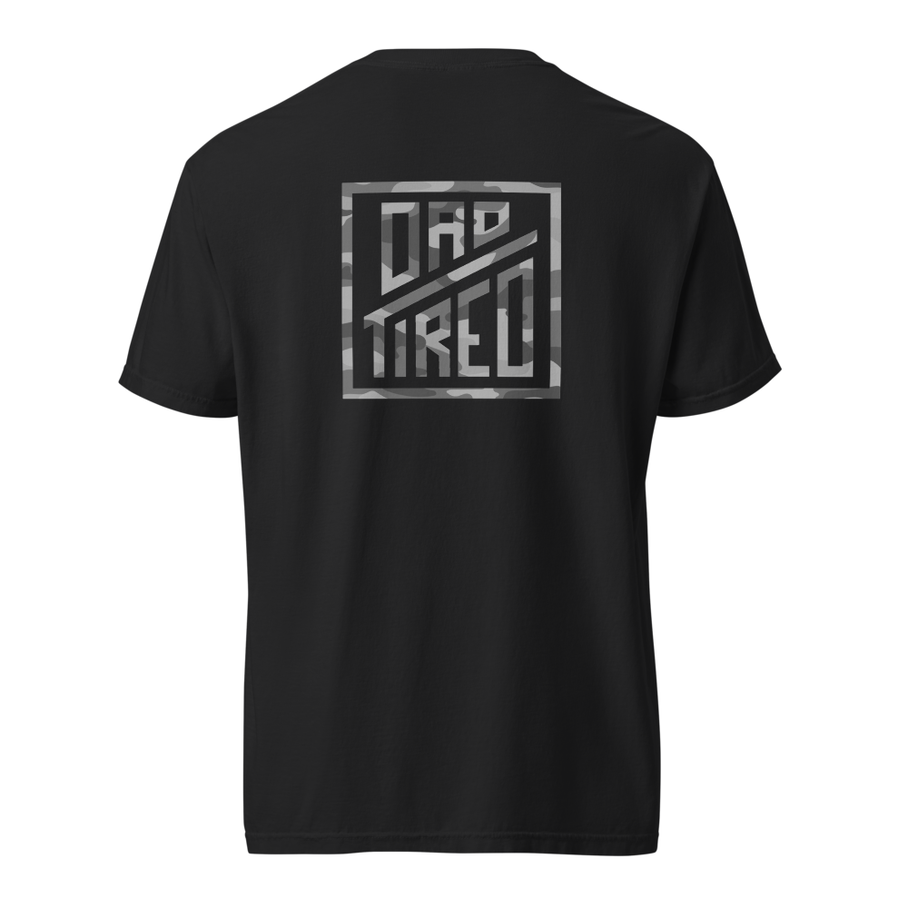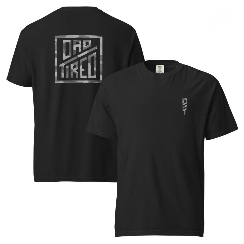 This tee features the DT mark on the front and a large Dad Tired logo on the back, layered with a subtle camo pattern. It’s a nod to the quiet battle many men are fighting every day—the fight to lead well, love well, and become the man God is calling them to be.